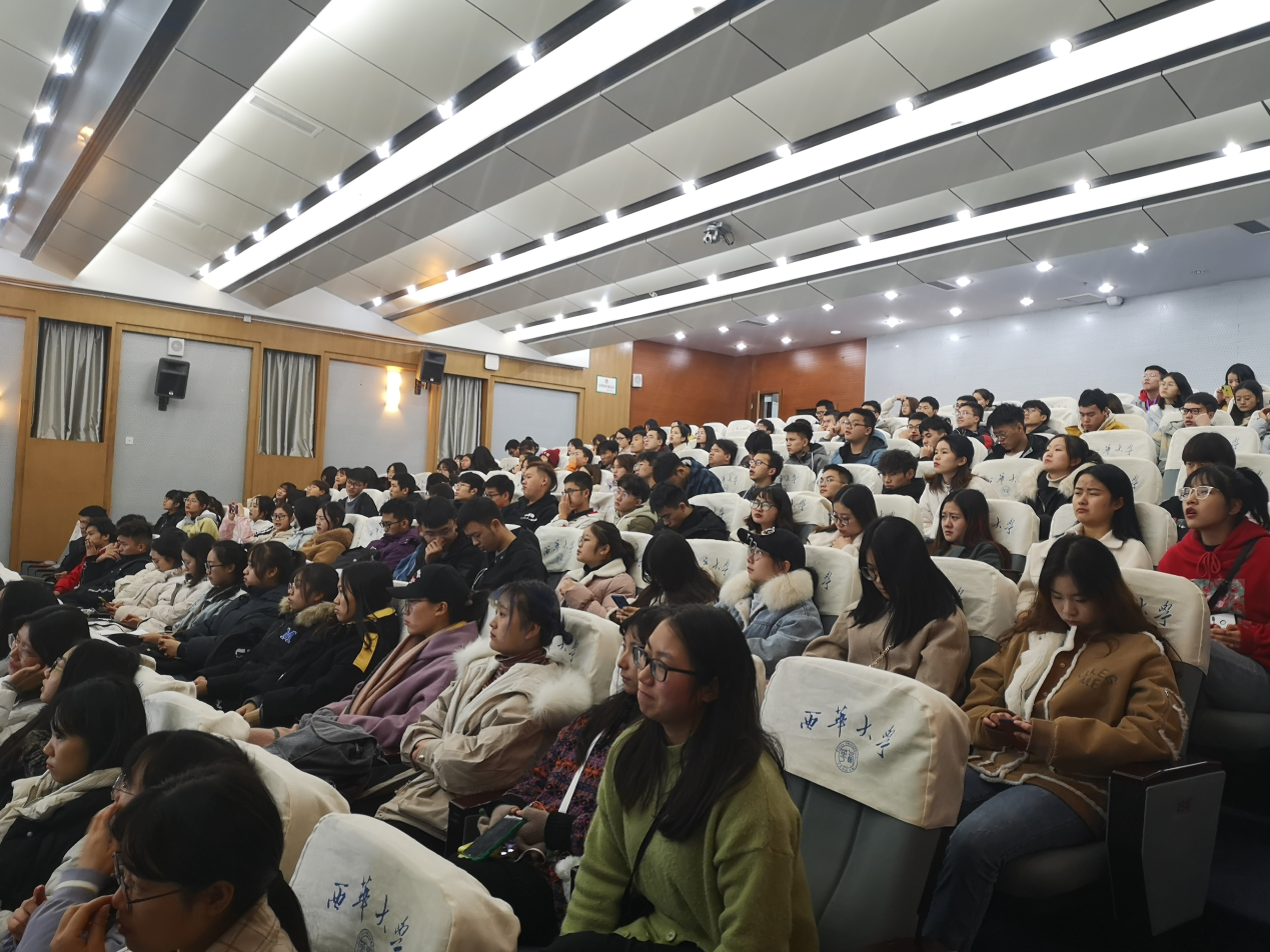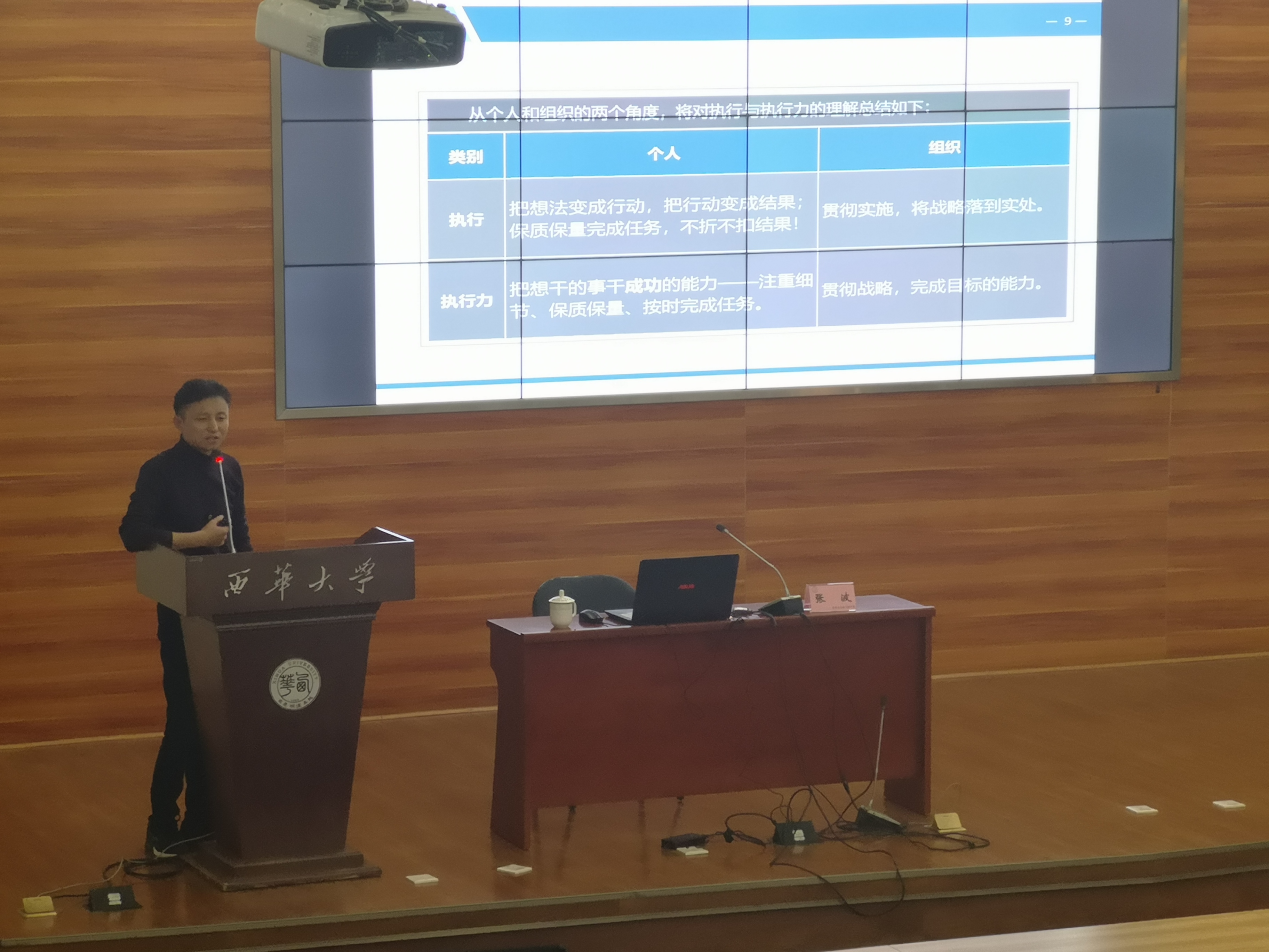正式开讲前,刘洪老师向大家介绍了主讲人张波(张乐)学长,张学长2011年毕业于西华大学bv伟德国际体育官方网站,现为成都树空间创意文化传播有限公司联合创始人兼副总经理,又兼任四川省技术创新促进会专家委员会副秘书长、成都医学院特聘教师、新津县社区规划师。张学长从自己奋斗的艰辛历程中切入,告诉大家大学时光珍贵且不可浪费。张学长提到,当代大学生遇事善拖沓,过分的拖拉已经严重影响了个人的学习生活。而追逐梦想的意志便在这无尽的拖沓中反复消磨。对此,张学长告诫我们拒绝拖沓,遇事果断执行,通过提高执行力改正拖沓的缺陷。随后,张学长列举了一些亲身实例向我们阐述了提高执行力的作用与意义,进一步深入了“如何成为更好的我”的讲座主题。张学长言语幽默有趣,同学们认真聆听指点并不时与学长互动。会场氛围充满向上、活泼之韵味。