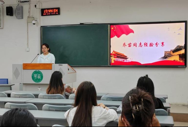 党支部宣传委员乔苗作为优秀毕业生代表上台分享经验,分别从文献阅读,文章发表、就业心得、生活体会等多个方面阐述了自己研究生三年的心路历程,为支部中的低年级党员树立了良好的模范,提出了切实可行的建议。