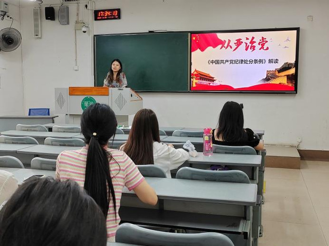 最后,党支部书记林洪斌对本次会议进行了总结,强调学习并遵守党规党纪的重要性,为毕业生党员送上最真挚的祝福,同时教育非毕业生党员从即将离开的学长学姐们身上汲取力量,激励自己不断前行。