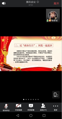 7月5日,为庆祝中国共产党成立99周年,西华大学bv伟德国际体育官方网站制药工程专业党支部通过线上会议的方式,举行了以“热烈庆祝中国共产党成立99周年”为主题的党日活动。活动由支部委员杨家城主持,支部各党员、预备党员等准时参加。