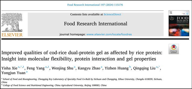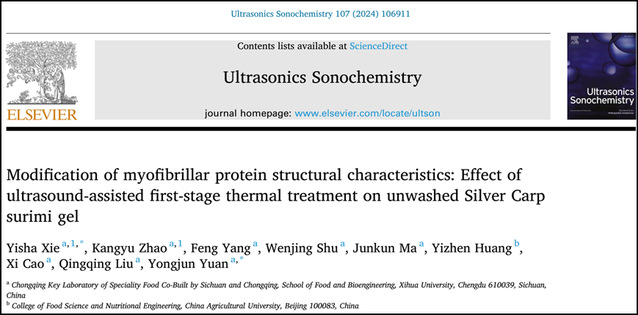 近期,bv伟德国际体育官方网站袁永俊教授、刘庆庆副教授、谢伊莎副教授研究团队在Journal of Agricultural and Food Chemistry、Ultrasonics Sonochemistry、Food Research International 等国际TOP期刊上针对超声调控蛋白凝胶与机制研究等发表多篇高水平研究型论文。