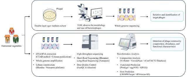 在本工作中,系统总结了发酵蔬菜核心微生物群落的动态演变规律,并深入综述了其中噬菌体的多样性与功能特性。通过整合前沿的多组学数据,研究团队成功解析了“噬菌体-宿主菌群-代谢产物”三者之间复杂的互作网络。研究发现,噬菌体并非传统认知中的“发酵破坏者”,而是通过精巧的裂解-溶原循环驱动微生物群落演替、影响产品风味品质。文章提出了宏基因组学与传统培养组学相结合的整合技术框架,为噬菌体资源库的建设和精准发酵调控技术的开发提供了方法论基础。这项研究不仅为理解发酵蔬菜中噬菌体的功能机制开辟了新视角,更为实现噬菌体精准调控的下一代发酵技术奠定了重要理论基础。