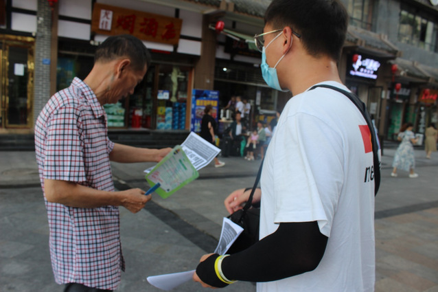 本次科普活动主要采用分发宣传单的形式。科普活动进行中,五位成员分工合作,分别携带着提前设计印刷好的新冠肺炎和新冠疫苗的宣传单,有序地向路过的群众分发宣传单,并向广大群众科普新冠肺炎的前期表现症状,新冠疫苗的来源和制备过程,作用原理,宣传了国家的新冠疫苗免费接种政策以及接种疫苗后的注意事项。同时,团队成员还邀请了接受宣传单和聆听科普的部分群众进行合影留念。活动结束后,五位成员响应国家保护环境的号召,自觉地清理了活动过程中产生的垃圾并带走剩下的宣传单和垃圾。