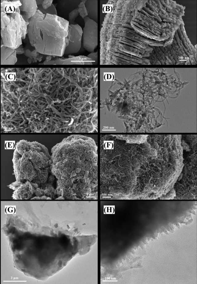 图1 不同材料的SEM/TEM图,展示Ti₃C₂Tₓ等的结构特征及复合后的三维结构