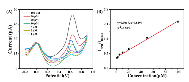 图7 不同SPR浓度的DPV曲线及校准曲线