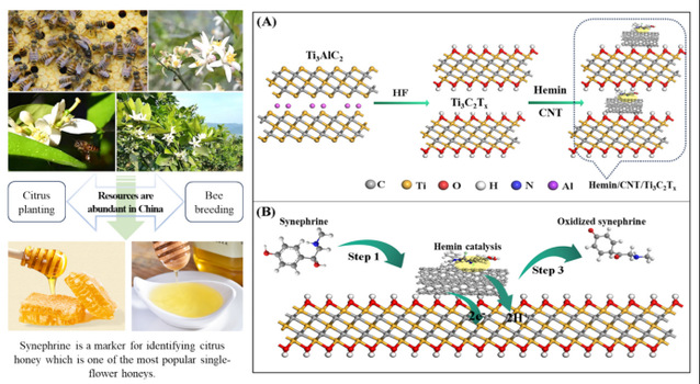 西华大学bv伟德国际体育官方网站依托“川渝共建特色食品重庆市重点实验室” 与重庆大学、重庆安全技术职业学院共同开展科研攻关,创新开发了基于功能化材料Hemin/CNT/Ti₃C₂Tₓ的比率电化学传感策略,并成功应用于蜂蜜样品中辛弗林含量的检测。本研究实现了柑橘蜂蜜的真实性精准快速鉴别,为柑橘蜂蜜质量控制提供了可靠保障,也为柑橘蜂蜜资源的进一步开发利用奠定了基础。