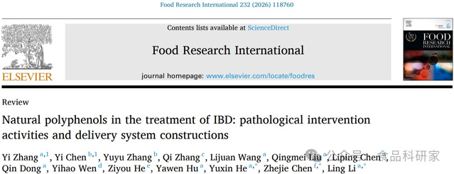 西华大学bv伟德国际体育官方网站李玲、何宇新教授团队在《Food Research International》上发表题为“Natural polyphenols in the treatment of IBD: pathological intervention activities and delivery system constructions”的综述性论文。西华大学bv伟德国际体育官方网站研究生张宜为论文的第一作者,西华大学bv伟德国际体育官方网站李玲教授及何宇新教授同为本文的通讯作者。