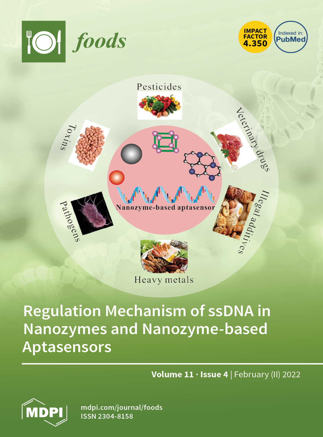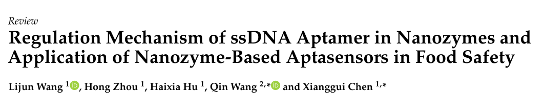 近日,西华大学bv伟德国际体育官方网站食品营养与安全团队在国际著名期刊《Foods》(IF=4.35)上发表了题为“Regulation Mechanism of ssDNA Aptamer in Nanozymes and Application of Nanozyme-Based Aptasensors in Food Safety”的综述期刊(Front Cover文章)。文章通讯作者为西华大学陈祥贵教授和马里兰大学王芹教授,第一作者为王力均副教授。