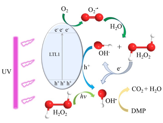 Figure 3. A schematic diagram of photocatalytic DMP degradation by LTL1 with H2O2.