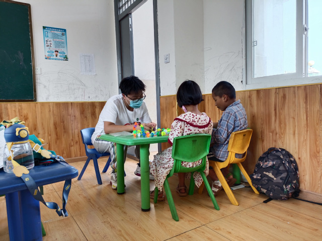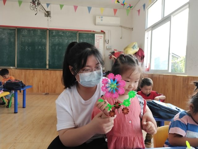 据了解,双祠堂小学的学生大都是周边的留守儿童和单亲家庭的孩子。有来自十几公里远的学生,会和老师们一起住在学校宿舍,有的留守儿童和爷爷奶奶、亲戚朋友们一起住。由于缺少家庭教育,造成了教育空档的遗憾,基于这种情况,孩子们不仅很难养成良好的习惯,难于健康发展,还会有潜在的心理健康隐患。为了避免孩子们出现这样的情况,易班团队希望通过支教的形式,开展课程讲解、动手实践、趣味绘画等特色课程吗,帮助孩子们健康的成长。实践团队为孩子们带来了彩色积木、油画棒、小红花奖励贴纸等学习工具,动手实践课程上,队员们带领孩子们完成了有趣的模板拼接,引导他们按照自己的想法拼接喜欢的东西,锻炼孩子们的想象能力和动手能力。趣味绘画课堂上,队员们为孩子们分发油画棒,带领他们从简单的基本笔画开始,然后以实物为主要教学内容,培养他们的兴趣和爱好。课程讲解时,队员们在课堂上,带领孩子们一起完成作业评讲,引导他们完成题目阅读、思路解析和错误纠正,为他们耐心讲解和精心辅导。
