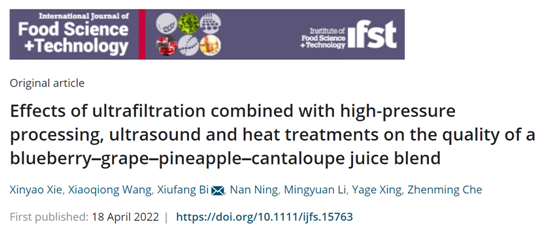 (3)Effects of ultrafiltration combined with high-pressure processing, ultrasound and heat treatments on the quality of a blueberry–grape–pineapple–cantaloupe juice blend