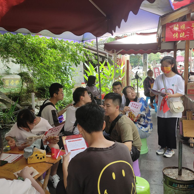 活动期间,团队成员与当地居民、游客进行了多种形式的互动和交流,向大家分发了印有习近平新时代中国特色社会主义思想和党的十九届六中全会精神的海报,让更多的游客和居民对习近平新时代中国特色社会主义思想和党的十九届六中全会精神有了感性的认识。对于视力不太好的居民,团队成员采取大声朗读、通俗易懂解释等方式进行讲解。团队以问卷调查的方式了解了当地居民和游客关于习近平新时代中国特色社会主义思想和党的十九届六中全会精神的了解情况后,召集当地居民、游客到宣讲地点,进行了党史互动宣讲,也向大家了解了当地的红色文化精神,选取了不同行业、不同身份的人群进行了党史及红色文化相关的采访、走访,了解居民对红色文化的认识,宣传红色革命精神。一行人探访了三道堰古镇红色革命精神博物馆,学习了先烈们不屈不挠、勇往直前的爱国主义精神。