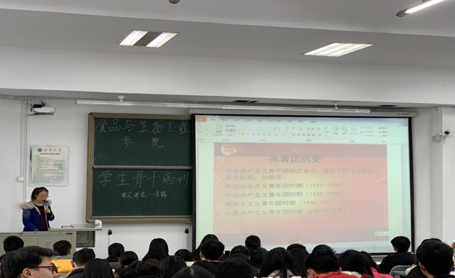 李鹤老师开展以“不忘奋斗初心,牢记青春使命”为题的共青团理论指导课,她讲述了共青团的发展历史、性质、作用,介绍了团旗、团徽、团员证的结构及其象征意义,入党誓词与入团誓词间的联系,解读了共青团十八大的重要内容,强调了学院领导和老师们对新生的要求与希望。