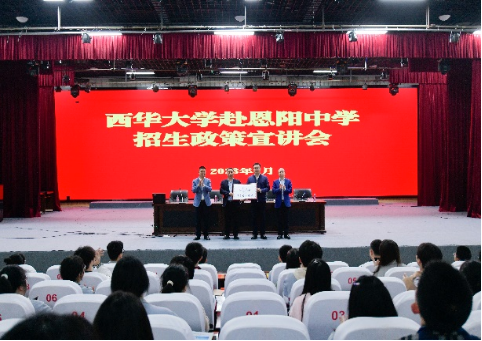 随后,熊华、张广峰代表学校分别授予巴中中学北湖校区、巴中市恩阳中学“西华大学优质生源基地”牌匾,并签订了“西华大学优质生源基地合作协议书”。