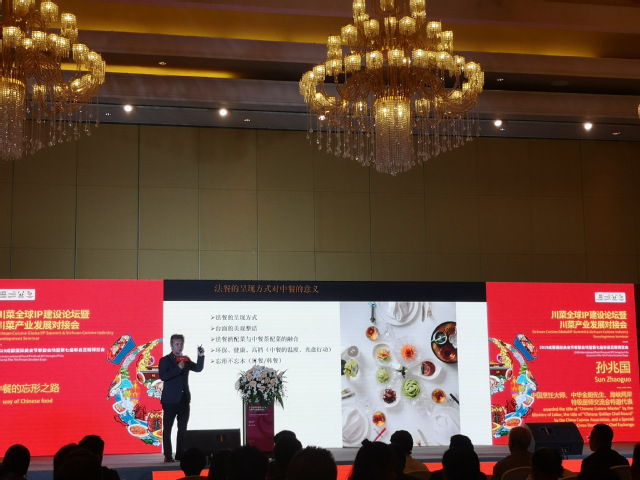 川菜全球IP建设论坛上,意大利驻重庆总领事馆康达成先生发来祝贺视频。他表示,中国与意大利都是文化、美食大国,期待郫都区推动川菜产业的发展,为世界美食增色添香,也希望更多意大利美食企业落户郫都。四川省饭店与餐饮娱乐行业协会秘书长、成都市美食之都促进会秘书长吴韵琴女士以“美食为媒,联结世界”为主题,分享了川菜品牌国际化取得的成果。海峡两岸特级厨师交流会特邀代表、被劳动部授予“中国烹饪大师”称号的孙兆国先生,围绕中西美食文化互鉴,作“中餐的忘形之路”主题演讲。“古法川菜”创始人、成都美食之都促进会副秘书长、法国美食协会会员、“走过最多米其林餐厅”的主理人周子铃女士,通过题为“行走米其林餐厅,思考川菜产业国际发展”的演讲,对川菜美食的国际品牌建设给出建议。