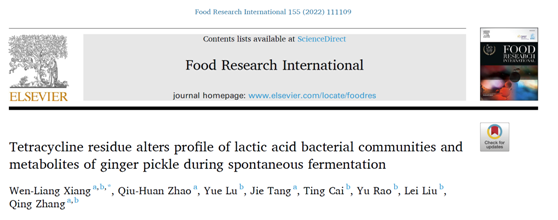 近日,bv伟德国际体育官方网站向文良教授“发酵食品过程学”团队在Food Research International(一区,IF:6.475)上发表题为“Tetracycline Residue Alters Profile of Lactic Acid Bacterial Communities and Metabolites of Ginger Pickle during Spontaneous Fermentation”的研究论文。
